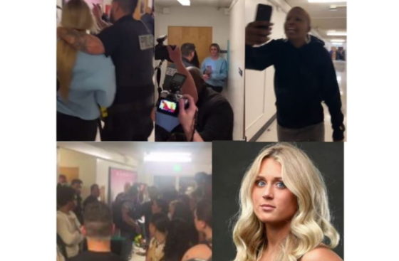 “The prisoners are running the asylum at SFSU…I was ambushed and physically hit twice by a man. This is proof that women need sex-protected spaces,” she tweeted along with a video showing her being escorted through a hallway with police officers and others hovering near her in a protective mode as a chanting mob of students and others holding cameras following close behind.