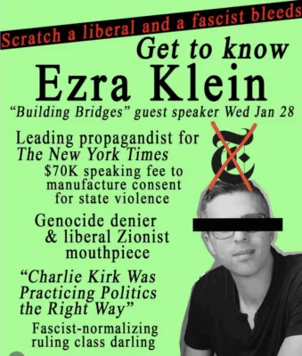 - Ezra Klein, a liberal, faced a disruption from anti-Israel activists during his talk at Sarah Lawrence College where he was labeled a 'Nazi' and 'genocide supporter' despite being a known critic of Israeli policies.
