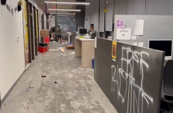 The Los Angeles Times reported the “building was deemed a crime scene by authorities and multiple windows were defaced with messages in red paint. Tables, hard-shelled umbrellas and rope still blocked the entrances and exits. … there was ‘significant damage’ on the first four floors of the student services building, including extensive graffiti and paint, as well as damage to equipment, walls and pipes.”