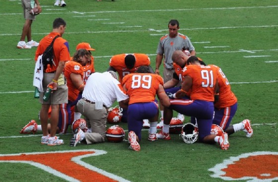 “Only 54 percent of college-aged Americans are Christian and many of the teams investigated have non-Christian players, but 100 percent of the chaplains investigated are promoting Christianity, usually with an evangelical bent,” the foundation states on its website. “These chaplains preach religious doctrine, including apparently creationism, to the athletes. Some universities, like Missouri, paid for chaplains and their wives and children to attend bowl games. Other universities paid chaplains for their services, including the University of South Carolina, which has a policy prohibiting such payments. Other universities, such as Auburn, give chaplains offices in the stadium. Chaplains were also involved in recruiting prospective athletes, raising the possibility of violating NCCA regulations.”