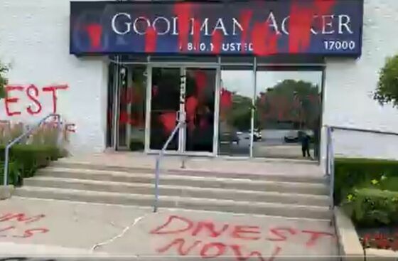 The words “Free Palestine” and “Divest or f— off” were painted in large letters across the Goodman Acker Law Firm in Southfield where Regent Jordan Acker is a partner, according to Detroit News.