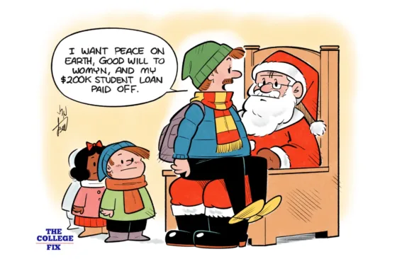 CARTOONS | OPINION/ANALYSIS Asking Santa for a student loan bailout Posted on December 12, 2025 By Joshua Masterson - Cartoonist Share to: More options Email Reddit Telegram Copy link An adult male asks Santa to bail out his student loans.