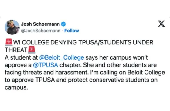 On Thursday, Wisconsin gubernatorial candidate Josh Schoemann called on the school to approve the chapter and protect its conservative students in a thread on X.