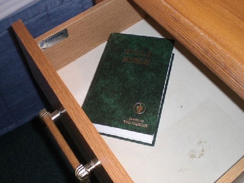 The group has a longstanding tradition of placing Bibles in hotel rooms.