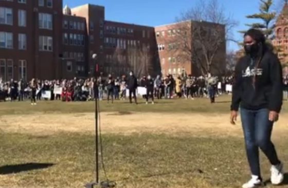 Unanka spoke at the university-endorsed walkout, which attracted hundreds of students and staff.