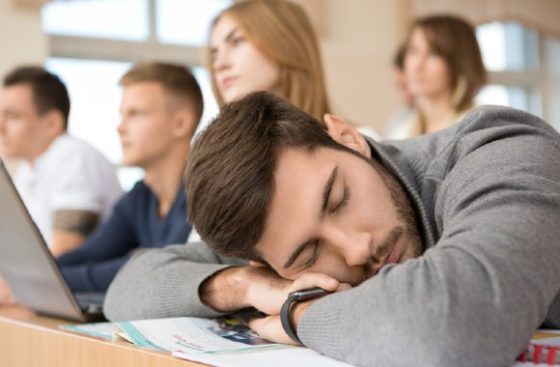 IMAGE CAPTION & CREDIT: A college student catches a nap in class; Nestor Rizhniak/Shutterstock.com