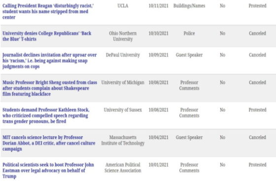 The database serves as a one-stop shop to monitor, chronicle — and remember — the effect of cancel culture on higher education. It seeks to document every example of targeting and suppression in an age of censorship, memory-holing, and soft totalitarianism.