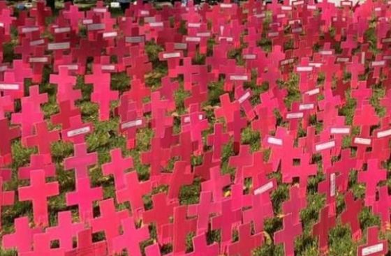 “A few hours after we set up, some pro-abortion advocates began to stomp, rip, and throw away the pink crosses and steal our other pro-life signs on display,” Senn stated in a news release.