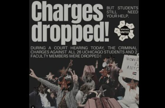During the Dec. 20 hearing, “state prosecutors dropped all charges against the 26 students and two faculty members arrested during a sit-in of Rosenwald Hall on November 9 organized by UChicago United for Palestine,” The Chicago Maroon reported.