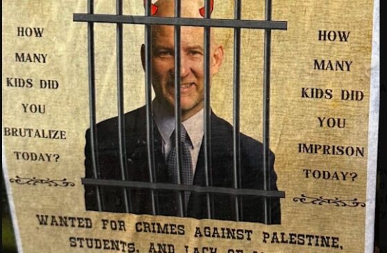 A photoshopped “wanted” image of Holloway (pictured) also was posted and portrayed the administrator with “horns on his head” behind bars along with the caption “WANTED FOR CRIMES AGAINST PALESTINE, STUDENTS, AND LACK OF MORALS,” the New York Post reports.