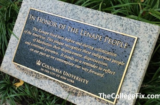The plaque’s unveiling ceremony was held Oct. 10 — Columbus Day. It appears to be a capitulation to various campus demands over the years for an official recognition of the “Lenape People” — who sold Manhattan to the settlers — as well as an acknowledgment of some sort that the Native Americans were wronged by the deal.