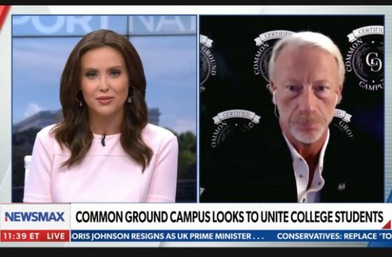 IMAGE CAPTION AND CREDIT: Brent Hamachek discusses Common Ground Campus on Newsmax; Newsmax
