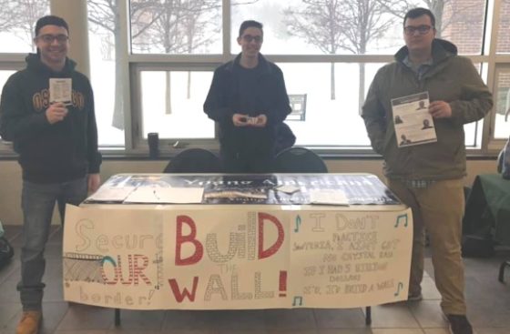 The table was set up around 10 a.m. and taken down around 4 p.m. in the Marano Campus Center with full permission from campus officials. It included phrases such as “Build The Wall,” “Secure Our Border,” and a play on a popular Sublime song that read: “I don’t practice Santeria, I ain’t got no crystal ball, if I had 5 billion dollars I’d, I’d build a wall.”