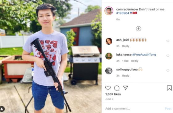 Tong, a Chinese immigrant, was punished in June for posting a photo of himself holding an AR-15 with the caption “Don’t Tread on Me” and referencing the Tiananmen Square Massacre.