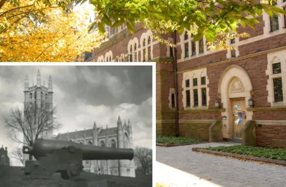 The plaque is attached to a Civil War era cannon on Trinity’s Hartford, Connecticut campus and honors alumni who fought on both sides of the Civil War.