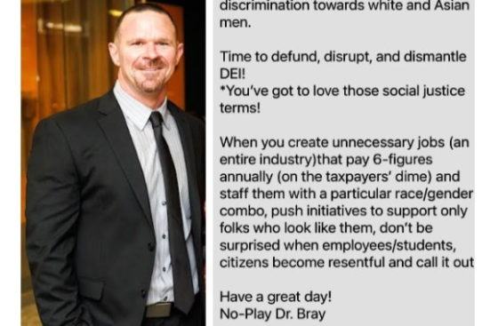 In his Linkedin posts, Bray primarily challenges Diversity Equity and Inclusion, or DEI, efforts on campuses across the U.S.