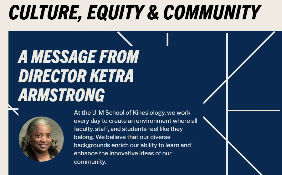 Meanwhile, the School of Kinesiology maintains an office of Culture, Equity, and Community that has at least four employees. The office works to “increase the demographic, psychographic, and disciplinary diversity of our community” and promote “inclusive excellence in our teaching, learning, scholarship, and service.”