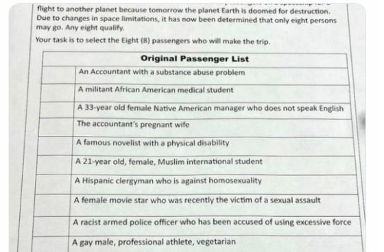 A “Cultural Competence Training” that asks participants who should live or die in a hypothetical scenario in which the world is ending has drawn criticism from some online observers.