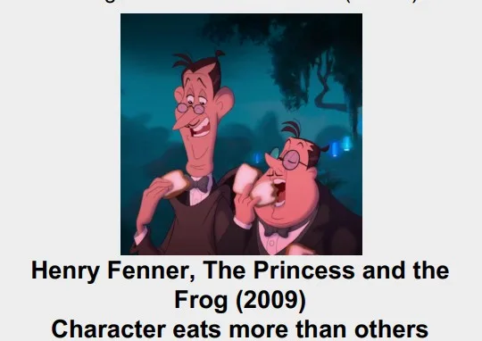 “The association between fat characters and food related depictions reinforces harmful rhetoric that fat people choose to be fat or lack control over themselves due to eating habits,” it states.