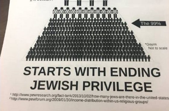 “Is the 1% straight, white men? Or is the 1% Jewish?” the flier questions.