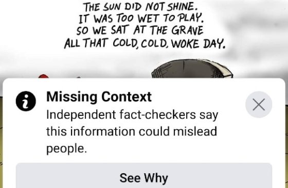 The Fix has reached out to several contacts at Facebook this morning to ask for a removal of the pop-up, which incorrectly tells people that the cartoon lacks context.