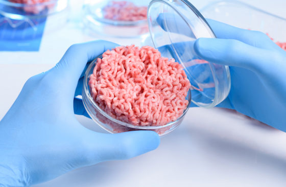 Yet the scientists were able to “induce cow and rabbit muscle cells to grow on gelatin scaffolds,” after which the cells “crawl[ed] inside and organized into tissue that looks and feels a lot like meat:”