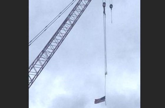 But one intrepid College Fix reader noticed there are several steel cable loops hanging from the crane, and the only one that appears to bother another is the one with the American flag on the end of it. He cites one image of the crane in which viewers can see three or four cable loops.
