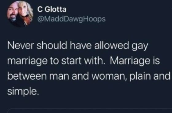 Charles Glotta, a basketball, tennis and track coach in Fort Zumwalt’s school district, tweeted on October 3, in response to another tweet, “Never should have allowed gay marriage to start with. Marriage is between man and woman, plain and simple,” according to a screenshot of the since-deleted tweet.