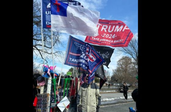 MAIN IMAGE CAPTION AND CREDIT: A display of pro-Trump flags in Washington, D.C.; Jeanine Yuen for The College Fix. INSIDE IMAGE CAPTION AND CREDIT: A screenshot of pg. 25 of a report compiled by Cooley LLP for Indiana University; Cooley LLP/Independent Post Action Review.