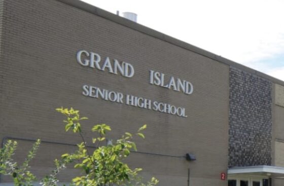 IMAGE CAPTION & CREDIT: Exterior of Grand Island High School; Grand Island HS website. INTERIOR IMAGES: Facebook, Audacy.com/X