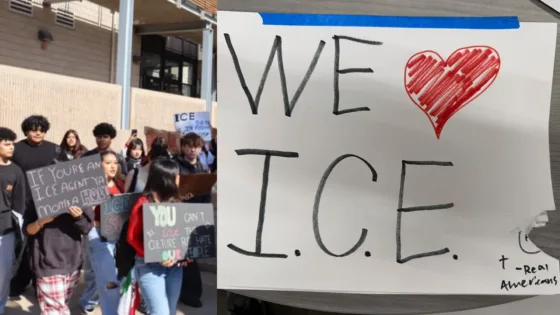 Two weeks prior during a school-day anti-ICE student protest, several demonstrators held signs reading “If You’re an I.C.E. Agent Ya Mom’s a Hoe!!,” “FUCK ICE,” and “ICE is KKK spelled differently.”