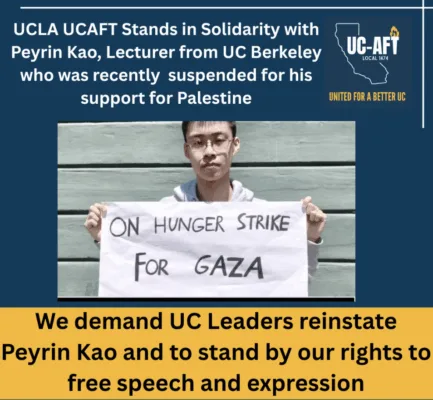 Ian Davis of the University Council–American Federation of Teachers Union wants UC Berkeley to “rescind” Kao’s suspension.