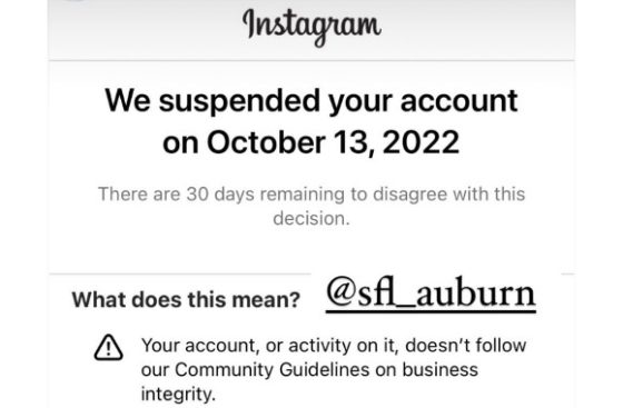 Auburn SFL, in a statement provided to The College Fix on Tuesday, said that on Oct. 13, their social media director appealed Instagram’s decision and asked for further clarification. The next day, Instagram responded saying that a potential reason for the ban was that the group “pretended to be someone else,” student President Gwen Charles said via email.
