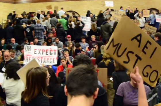The Campus reports that the picture in question was taken by a staff photographer in front of the livestream of Murray’s 2017 visit (the American Enterprise Institute scholar had been ushered to a private room to finish delivering his talk via livestream after rowdy protesters essentially shut down the event in the main lecture hall).