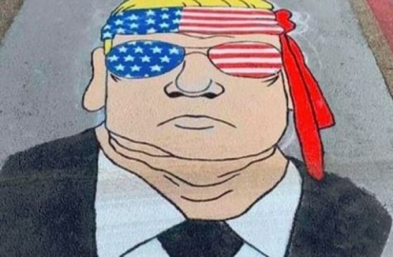 She had Mr. Trump painted over with gray paint.