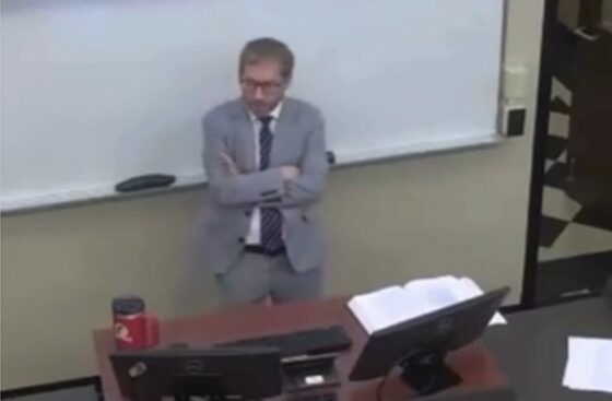 The video, dated Nov. 6, identifies the professor as Nicholas Bryner, (pictured) who teaches in the public university’s law school. He appears to be addressing students at the start of a class.