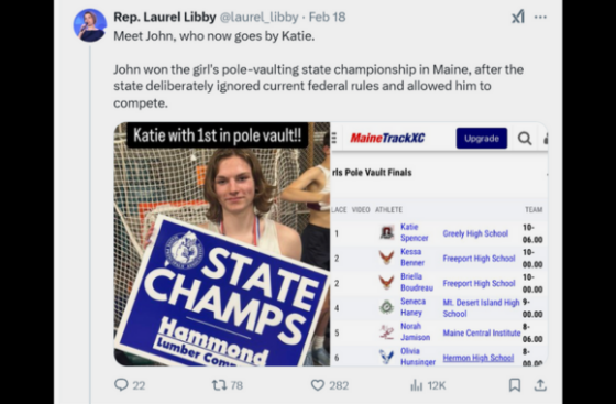 Greely is a public school, which means it relies on government funding. According to Trump’s order, Greely would lose federal funds for allowing a male to compete in girls’ sports. However, the school also relies on state funding and Maine is one of the states that changed its discrimination definition to protect “gender identity” over biological reality.