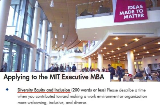 Currently, the Sloan School of Management requires Executive MBA applicants to write a 200-word “Diversity, Equity, and Inclusion” essay about “a time when you contributed toward making a work environment or organization more welcoming, inclusive, and diverse,” according to the application website.