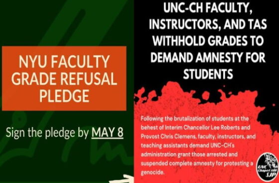 The grade strike followed the signing of a letter by over 700 UNC faculty members echoing the NYU faculty’s demands that suspended students be given amnesty by the school administration.