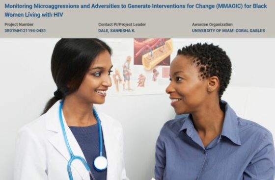 “Monitoring Microaggressions and Adversities to Generate Interventions for Change (MMAGIC) for Black Women Living with HIV,” aims to “shed light on how microaggressions and other adversities (i.e. re-occuring trauma and violence) impact HIV viral suppression among [Black women living with HIV] as mediated by mental health symptoms/diagnosis.”