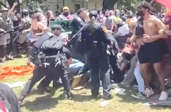 At 1:08 p.m., UT-Austin students received a text stating “UTPD Notice of Dispersal Order” for those participating in the South Mall event; soon after, officers began arresting those within the encampment as a crowd of hundreds of students surrounding the melee chanted “let them go,” according to video and screenshots obtained by The College Fix.