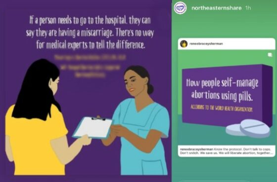 A student club at Northeastern University recently posted a graphic to social media telling students that they can lie to doctors if they are experiencing negative side effects from medication abortion.