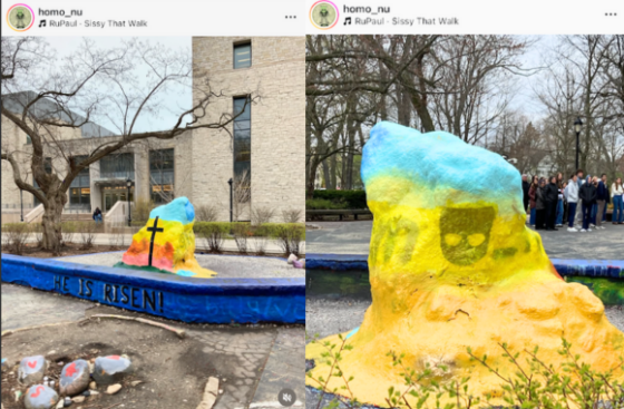 Someone repainted The Rock on Northwestern University’s campus to promote a pro-Christian and Easter message, replacing the pro-Grindr and gay porn content previously on it.
