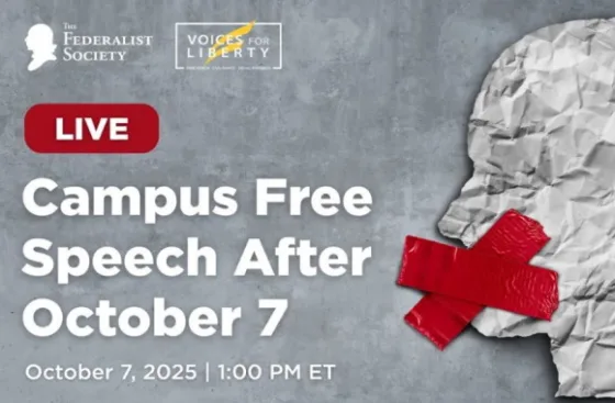 “…On the second anniversary of the Oct. 7 attack, the Federalist Society will host a live panel discussion on these recent free speech controversies, why protecting freedom of speech is central to the Western tradition, the significance of October 7 to the Jewish community, and campus anti-semitism concerns.”