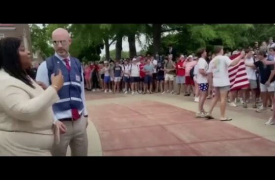 Staples is seen on video making monkey noises towards a black woman who is walking towards the crowd, many wearing American flag clothing. “A witness told OutKick he believed the noises were directed at her because she is overweight,” the news outlet reported.