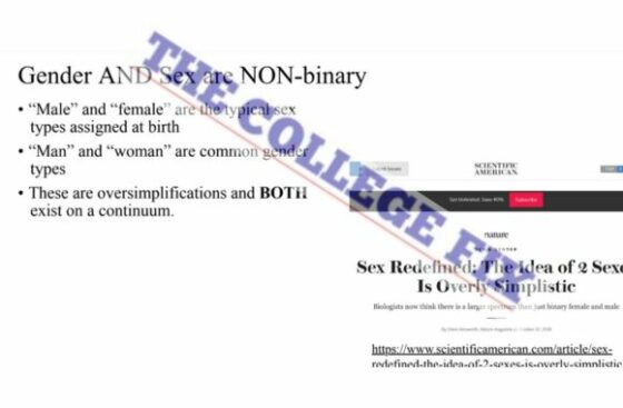 Documents obtained by Do No Harm and provided exclusively to The College Fix show the public university continues to teach sex and gender are both “non-binary.”