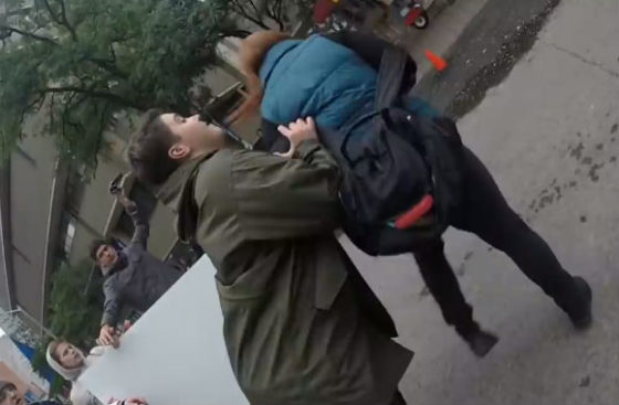 The person on video identified as Skwarko threw a “metal dolly” at Somers, chased her and jerked her around by Somers’ backpack, reaching inside and removing a metal canteen that the attacker threw on the ground.