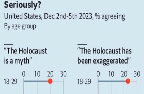 A new poll sheds light on why so many college-aged Americans aren’t worried about expressing antisemitism: Twenty percent of those between the ages of 18 and 29 believe the Holocaust is a myth.