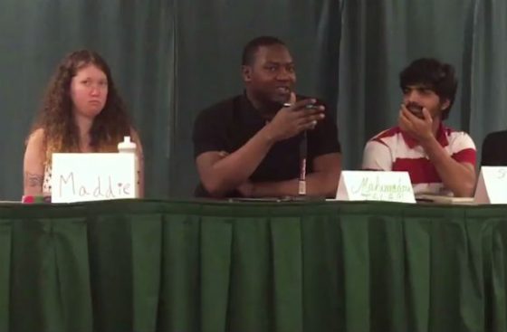 The student said that in countries that observe “Koranic law,” being a non-believer is a crime, but non-believers are “given the liberty to leave the country … I’m not going to sugarcoat it”: