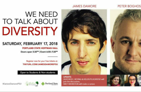 Read the Damore event description and official PSU diversity series.